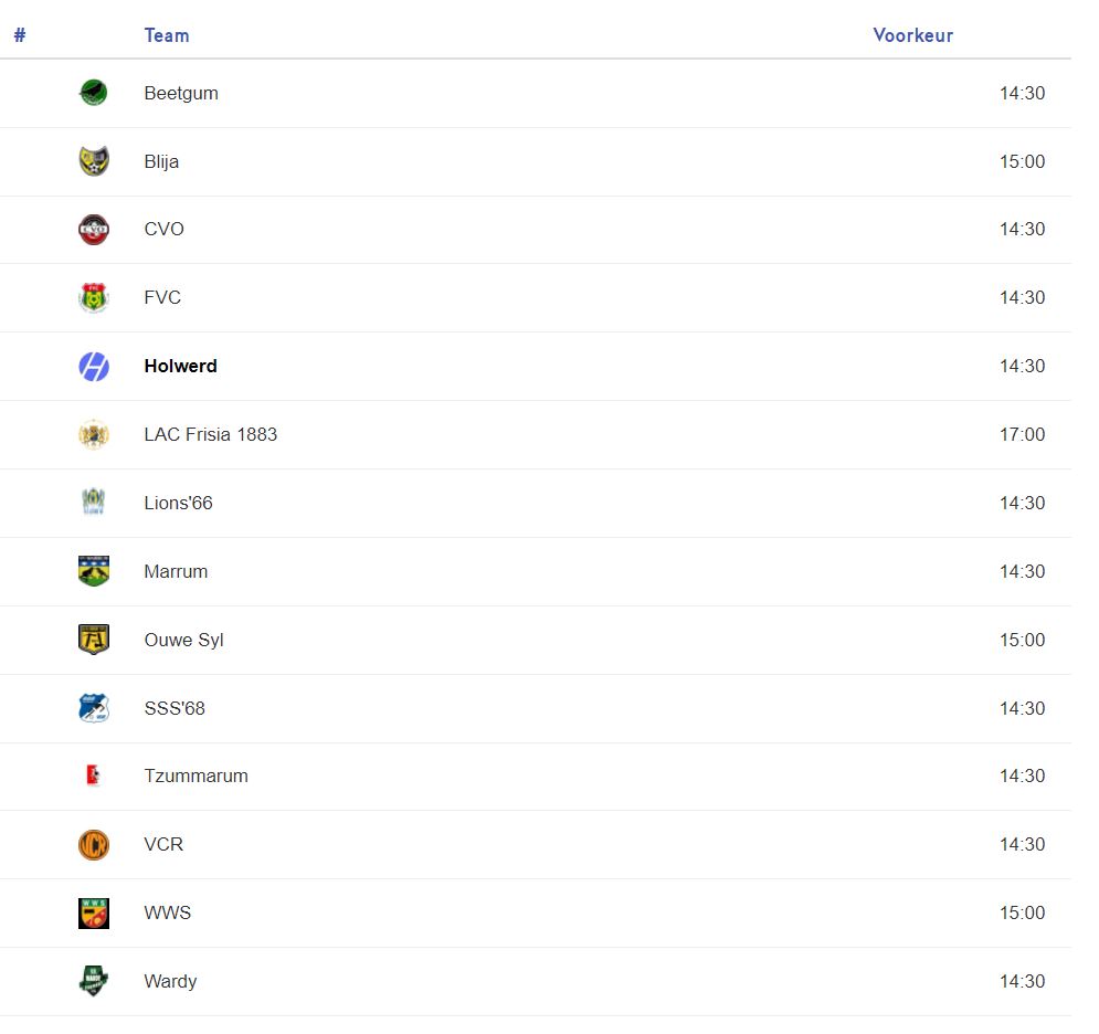 Trainingstijden